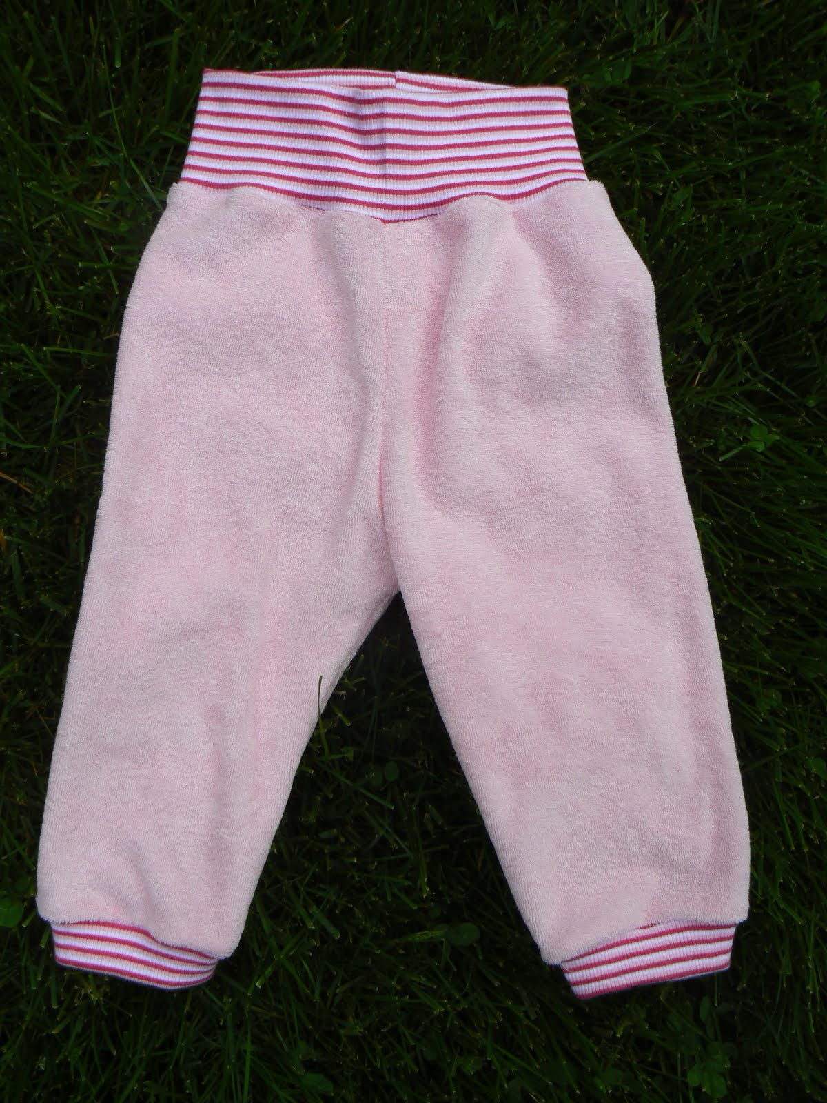 Vaaleanpunainen joustofrotee on Eurokankaasta ja raidallinen resori Hilcoa Michas Stoffeckesta.